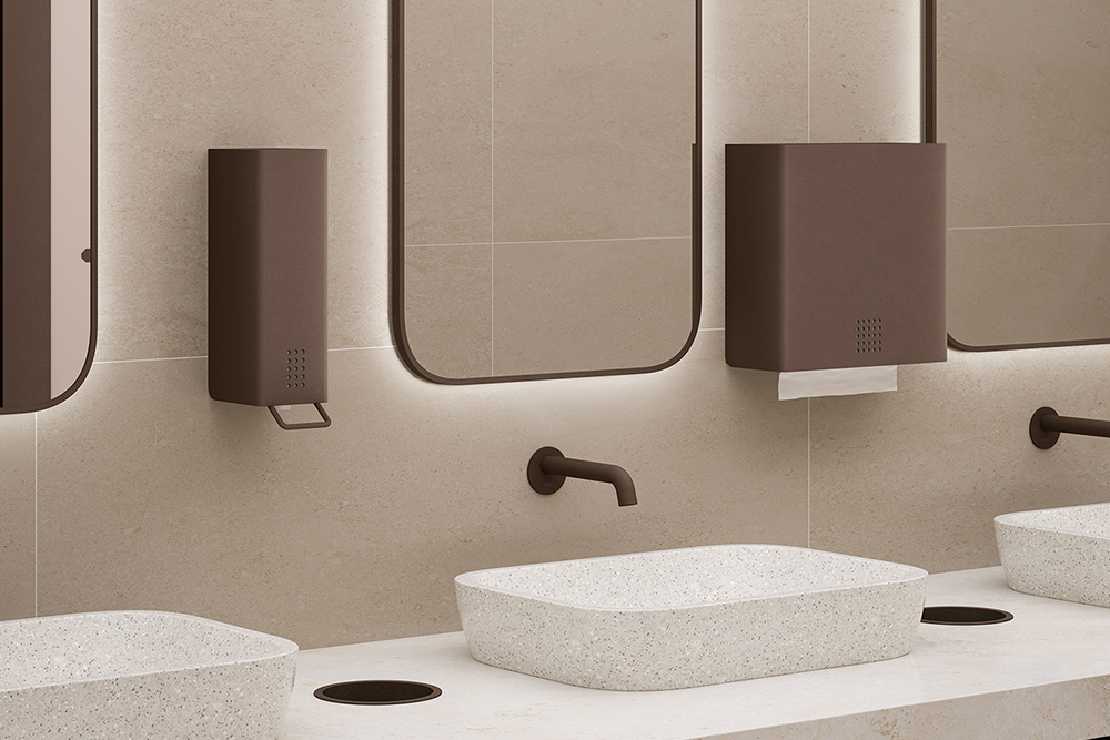 Teplý bronzový odstín s architektonickou hloubkou. Architectural Bronze dodává sanitárním doplňkům rafinovanou, decentní eleganci a vnáší přirozené teplo do moderních interiérů – ideální pro nadčasový design.